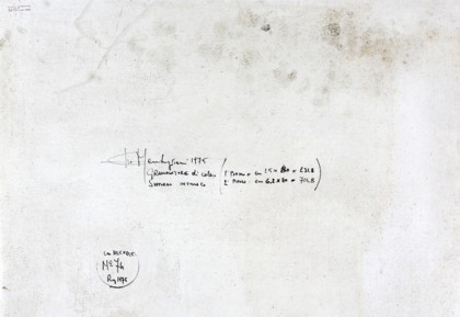 Grammature di colore su intonaco, cm. 81,5 x 101,5 Firmato e datato sul retro Autentica dell'artista su fotografia Timbro Studio Sant'Andrea Milano sul retro Prov. Collezione Privata