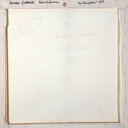 Tecnica mista su tela, cm. 95 x 95 Firmato e datato sul retro Autentica dell’artista su fotografia L'opera è stata restaurata dall'artista nel 1999 Prov. Collezione Privata