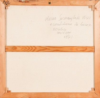 Acrilico su tela, cm. 100 x 100 Firmato e datato sul retro Timbro D’Ars, Milano sul retro Prov. Collezione Fondazione D’Ars Oscar Signorini Onlus, Milano