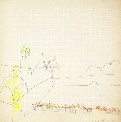 Grafite e matite colorate su carta quadrettata, cm. 25 x 25