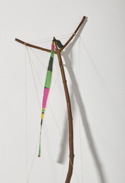 Scultura in legno, corda, tessuto, cm. 185 x 31 x 47