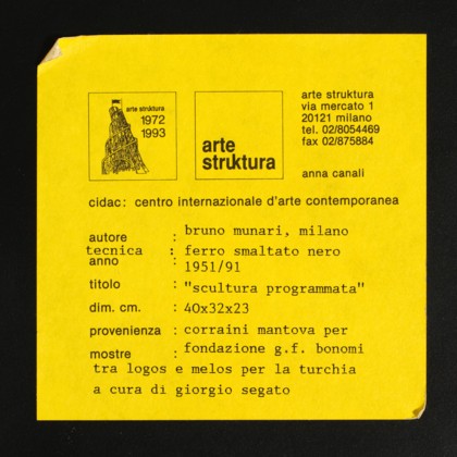 Nasce a Milano nel 1907. Artista e designer eclettico tra i più importanti del Novecento italiano, l’attività di Munari è di difficile classificazione. Le sue sperimentazioni variano dalla scultura, pittura, poesia, grafica al cinema e alla didattica, con una continua...