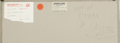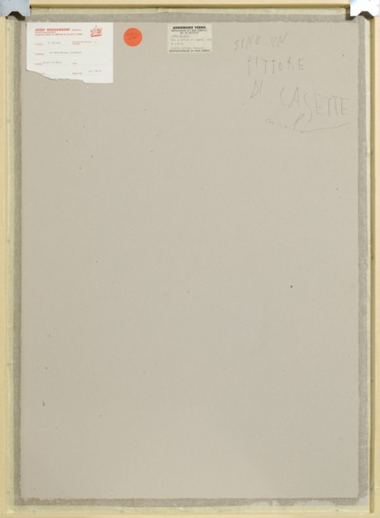 Sono un pittore di casette, 1982Gouaches e collage su carta, cm 38,5 x 30Firmato e datato sul retro Etichetta Annemarie Verna, Zurigo sul retro PROVENIENZAAnnemarie Verna, ZurigoCollezione Privata