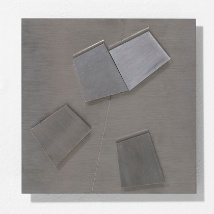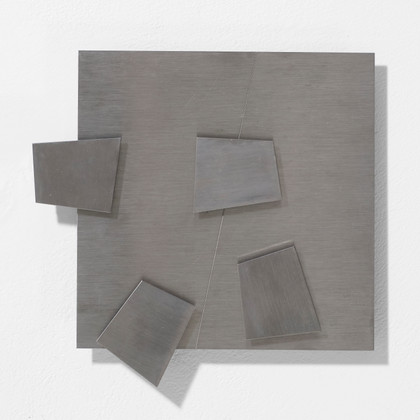 Senza titolo, 1973Prototipo per multiploMagneti permanenti su acciaio inox applicato su tavola, cm 20 x 20 Firma, anno, sul retro PROVENIENZACollezione Privata