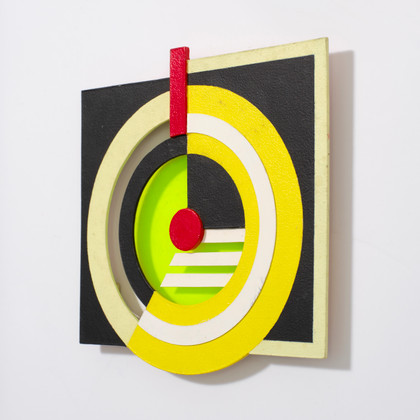 Acrilico e collage su tavola, inserto in plexiglas, cm 19,5 x 19,5