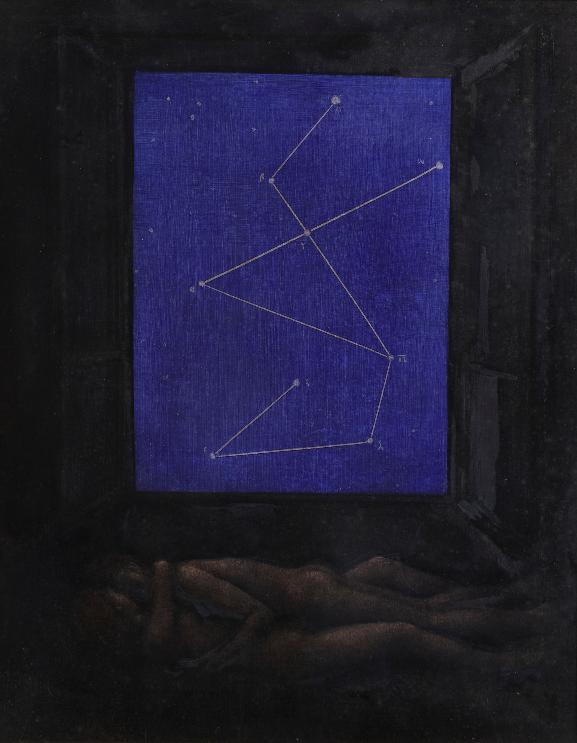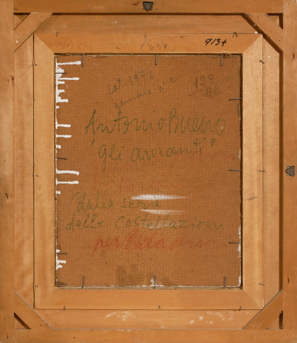 Gli amanti (dalla serie delle Costellazioni), 1976 Olio su faesite, cm 50 x 40 Firma, data, sul retro Certificato di archiviazione a cura di Maria Isabella Bueno n. AB 033/024