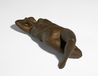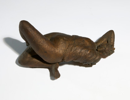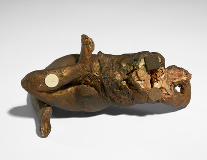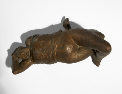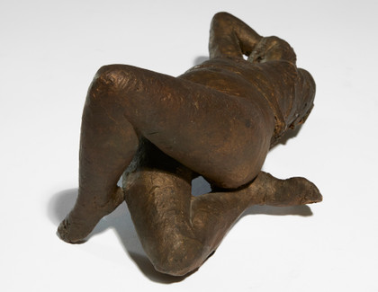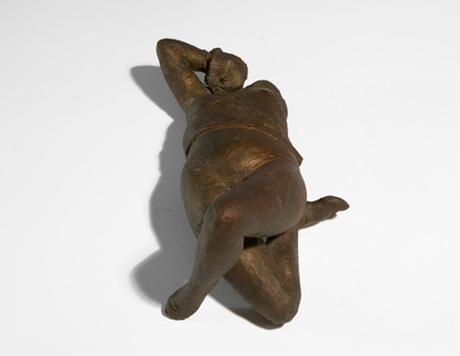 Scultura in terracotta dipinta, cm 15 x 33 x 18