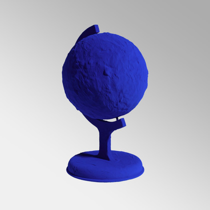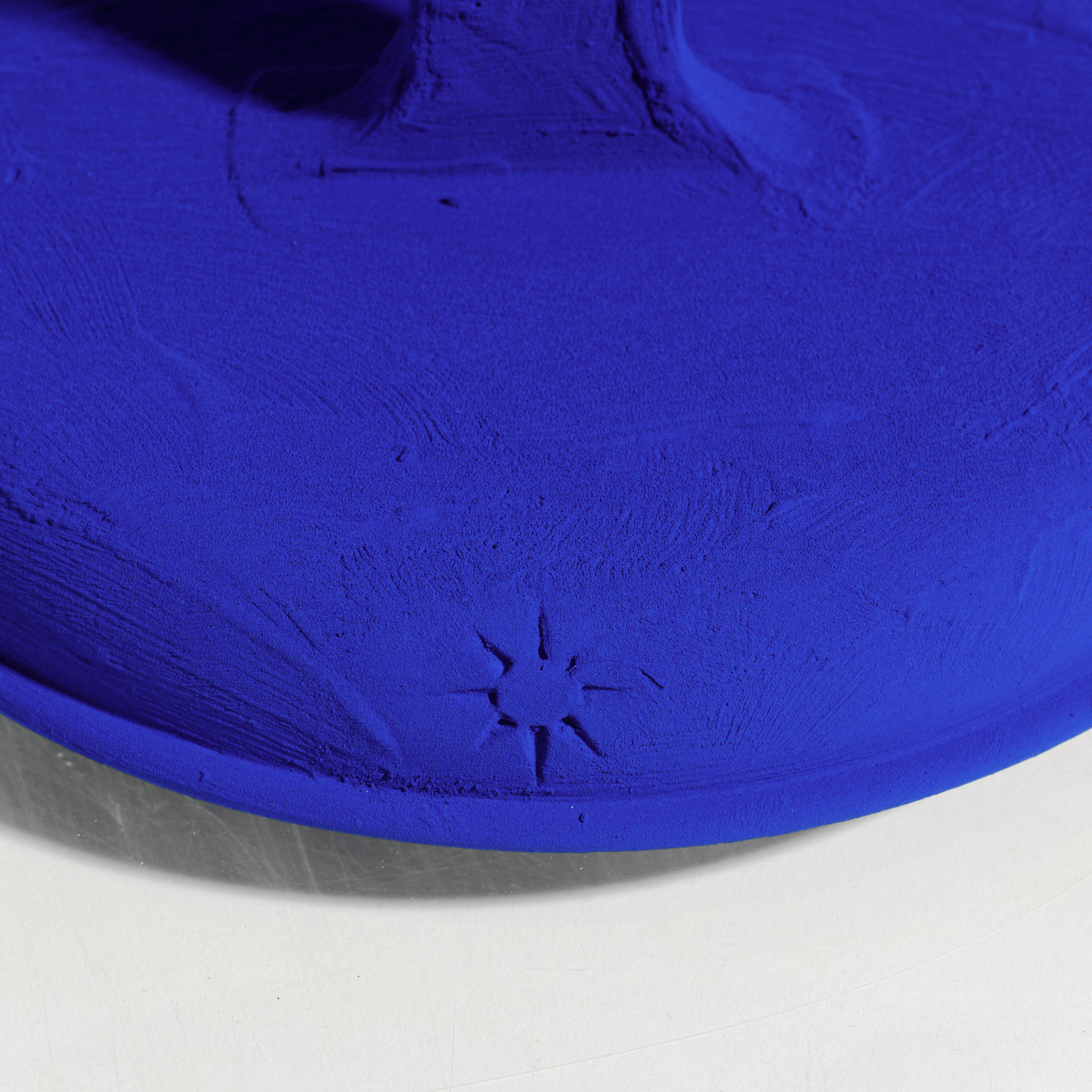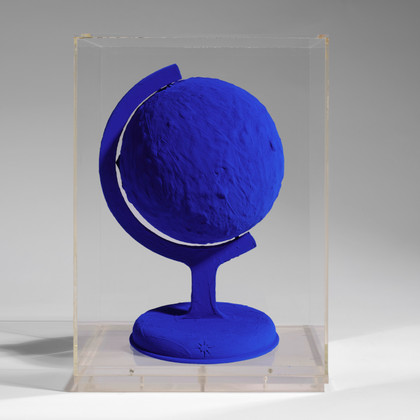 Pigmento IKB e resina sintetica su calco in gesso, cm 34,9 x 22,9 - teca in plexiglas cm 41,4 x 29,4 x 29,4