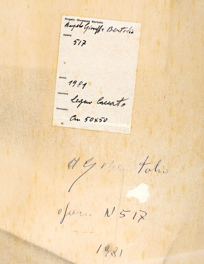 n. 517, 1981Rilievi in legno laccato applicati su tavola, cm 50 x 50 x 5Firma, anno, titolo, sul retro Etichetta dell'artista sul retro PROVENIENZACollezione Privata