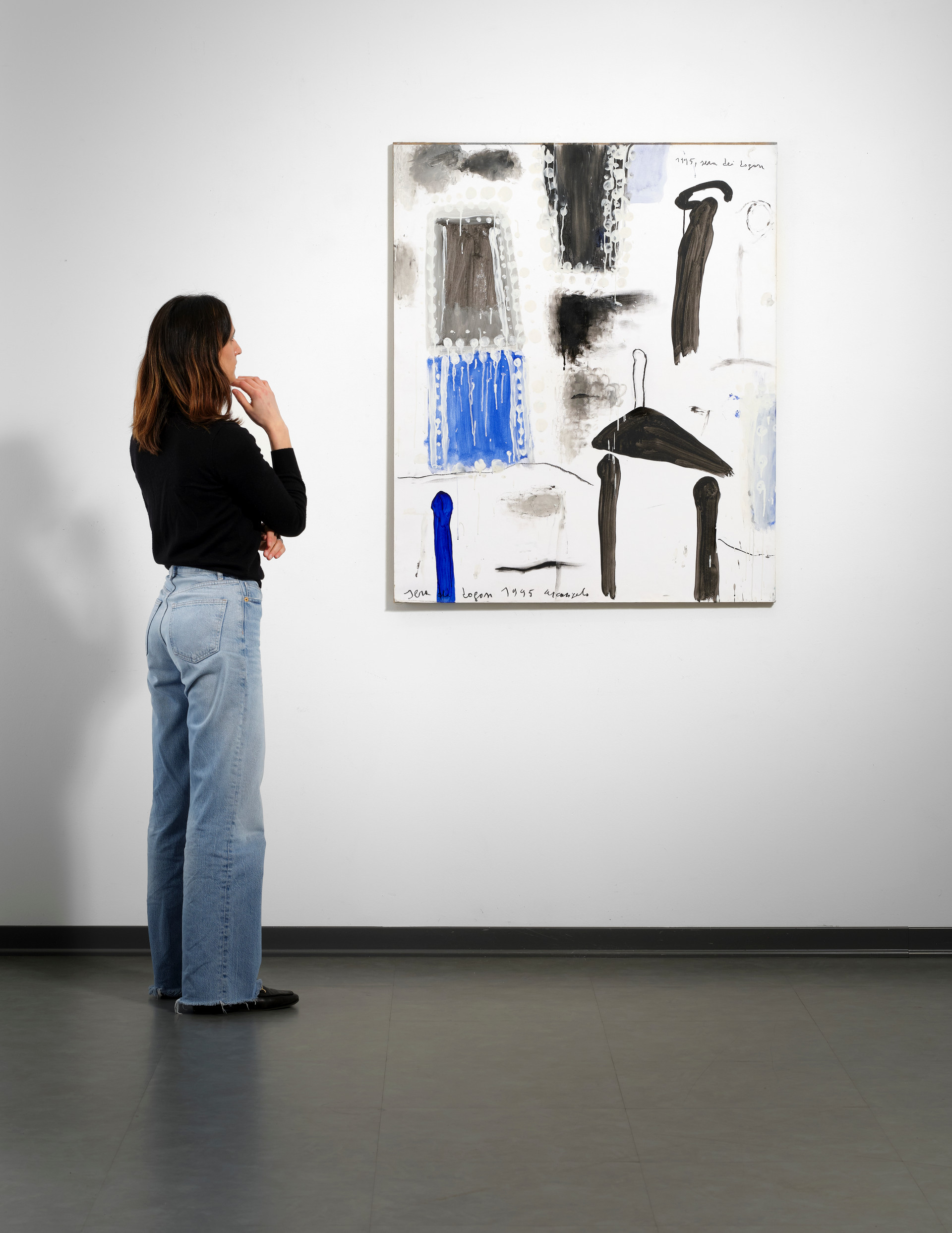 Sera dei Dogon, 1995 Tecnica mista su carta intelata, cm 120 x 100 Firma, anno, titolo, in basso a sinistra Anno, titolo, in alto a destra Etichetta e timbro Galleria Annunciata, Milano sul retro
