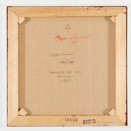 Racconto del sud, 1985Acrilico su tela, cm 50 x 50Firma, anno, titolo, sul retro Timbro dell'artista sul retro Archivio Beppe Bonetti n. 276/6PROVENIENZACollezione Privata