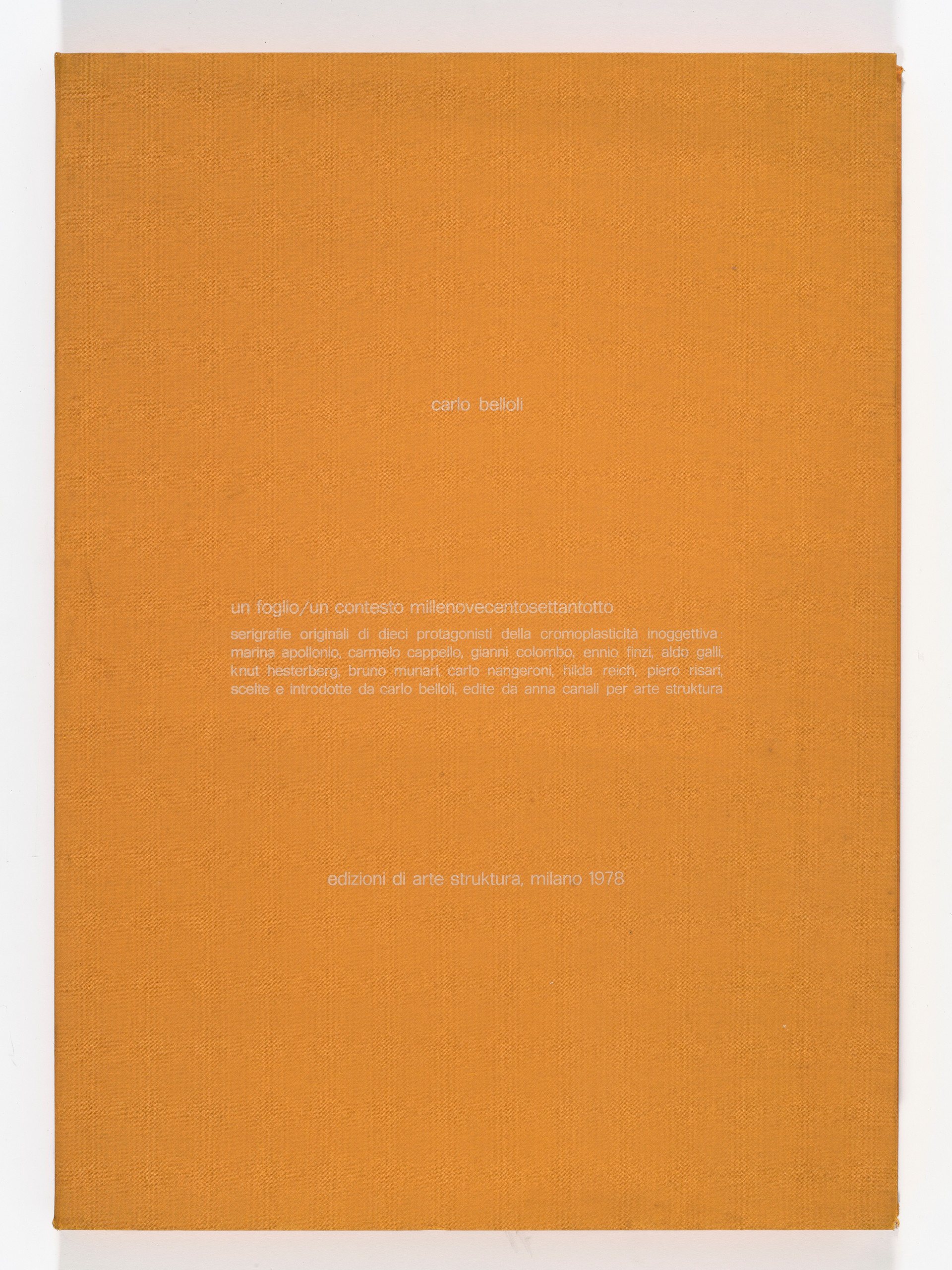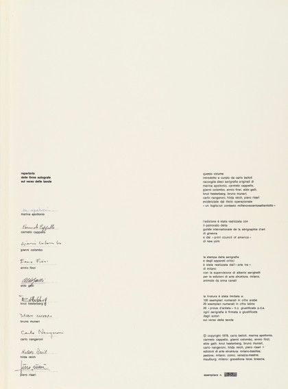 Cartella contenente 10 serigrafie di M. Apollonio, C. Cappello, G. Colombo, E. Finzi, A. Galli, K. Hesterberg, B. Munari, C. Nangeroni, H. Reich, P. Risari - testo, cm 70 x 50 cad.