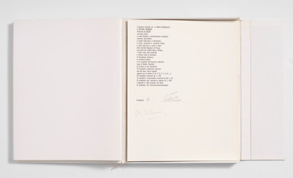 10 serigrafie entro teca in plexiglas e libro di Arturo Schwarz, cm 31 x 25 cad. (teca cm. 32 x 26 x 9,5)