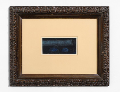 Occhi, 1977Pastelli a cera su carta, cm 8 x 17,3Firma, anno, titolo, sul retroTimbro Galleria Correggio, Parma sul retroPROVENIENZAGalleria Correggio, ParmaCollezione Privata