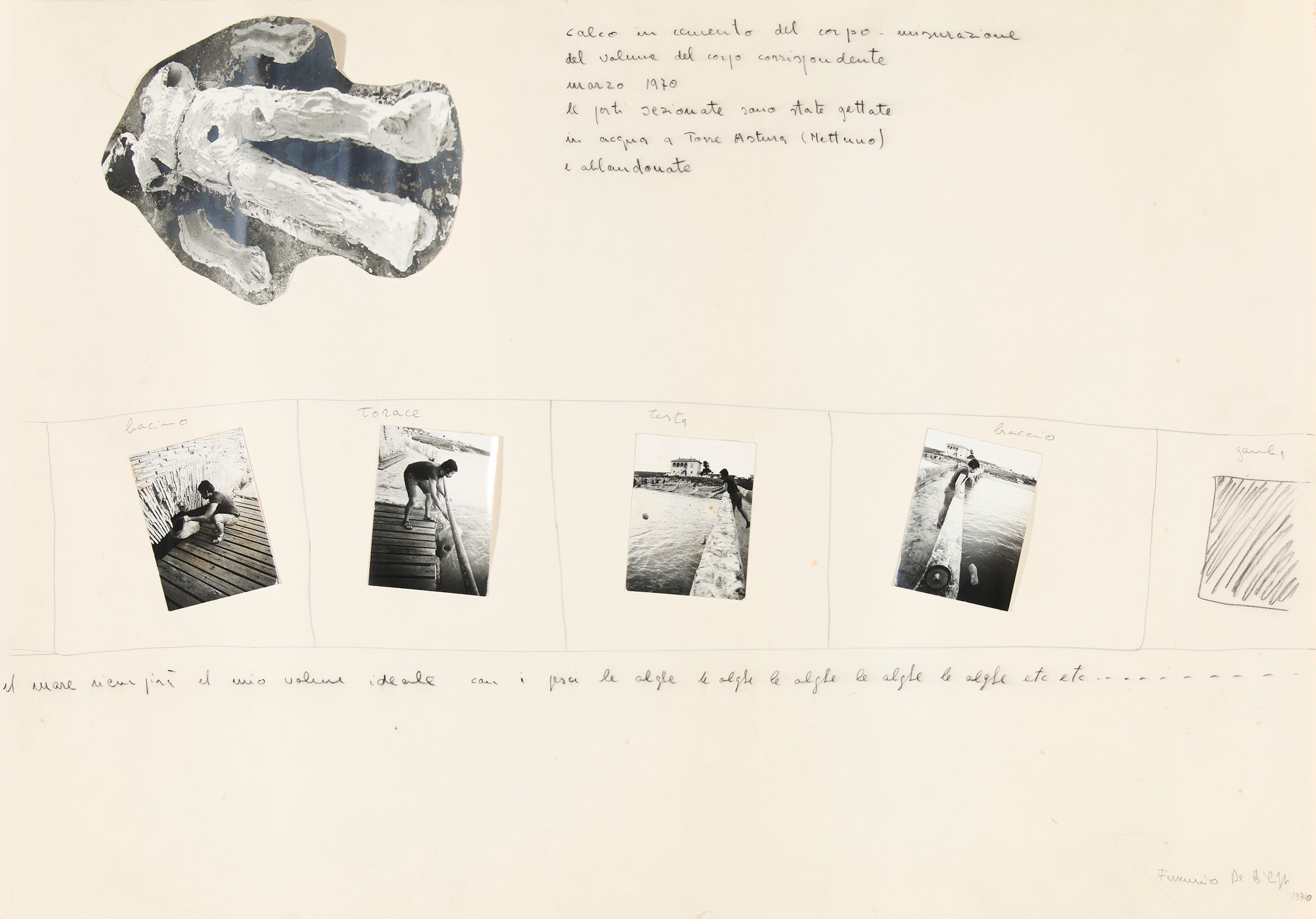 Calco in cemento del corpo, 1970Grafite e collage su cartoncino, cm 68,5 x 98,5Firma, anno, in basso a destra Titolo, anno, in alto PROVENIENZACollezione Privata