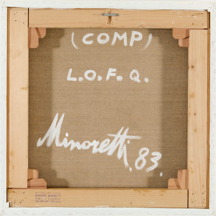 (Comp) L.O.F.Q, 1983Acrilico su tela, cm 50 x 50Firma, anno, titolo, sul retro Timbro dell'artista sul retro PROVENIENZACollezione Privata