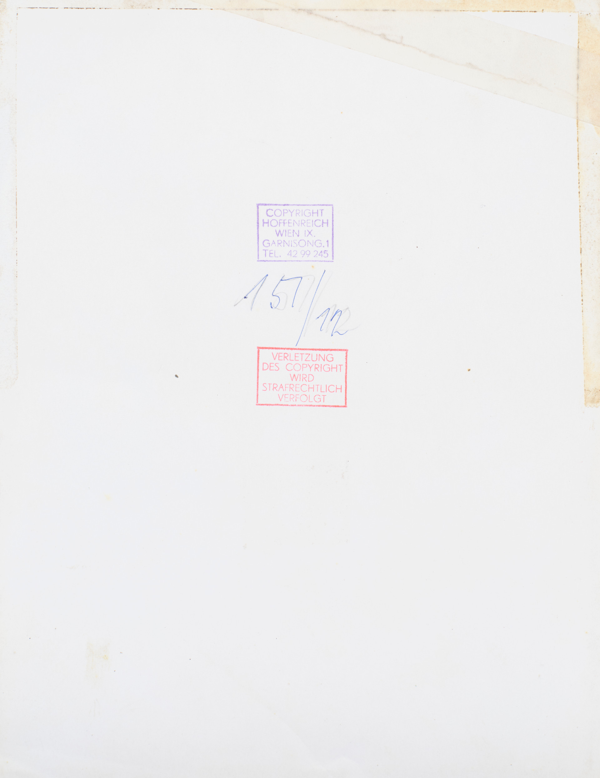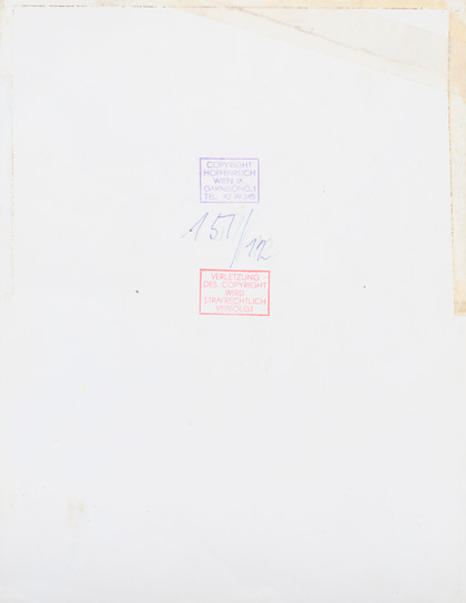 Senza titolo Fotografia b-n, cm 23,5 x 18 Firma, in basso a destra Timbro Copyright Hoffenreich Wien, sul retro Timbro Verletzung des copyright wird Strafrechtlich Verfolgt, sul retro
