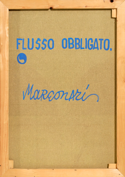 Flusso obbligatoTecnica mista su tela, cm 70 x 50Firma, titolo, sul retroPROVENIENZACollezione Privata