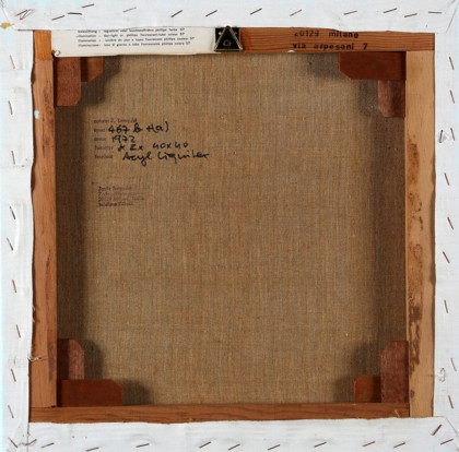 Acrilico su tela, cm. 40 x 40 (cadauno) Firmato e datato sul retro Timbro dell'artista sul retro Opera registrata presso l'Archivio Tornquist con il n. 1972 - 0105 Prov. Collezione Privata