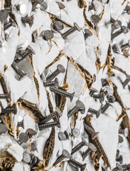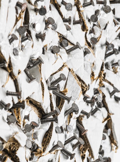 Nails and spray paint on overlapped carved cardboards, cm. 40 x 40 x 5