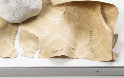 Plaster and wallpaper sculpture in a plexiglass case, cm. 35 x 44 x 9
