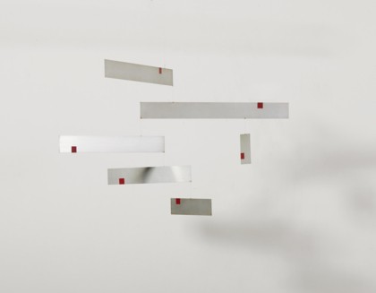 Multiple, sculpture in aluminum, enamel, nylon thread, cm. 45 x 80