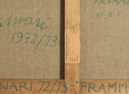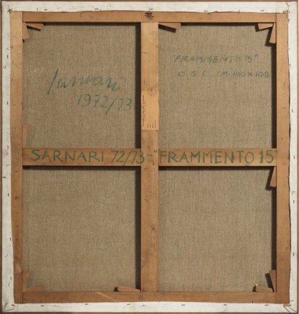 Frammento 15, 1972-73Oil on canvas, cm. 105 x 100Signed and dated on the backLabel and stamp Galleria d'Arte del Naviglio, Milan on the backPROVENANCEGalleria d'Arte del Naviglio, MilanPrivate collection