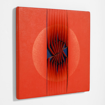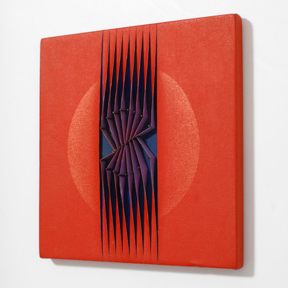 Acrylic on canvas, slats, applied on painted board, cm 20 x 20