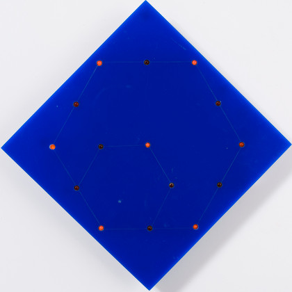 Engraving on plexiglass, electric luminous system, cm 28 x 28 (side cm 20 x 20)