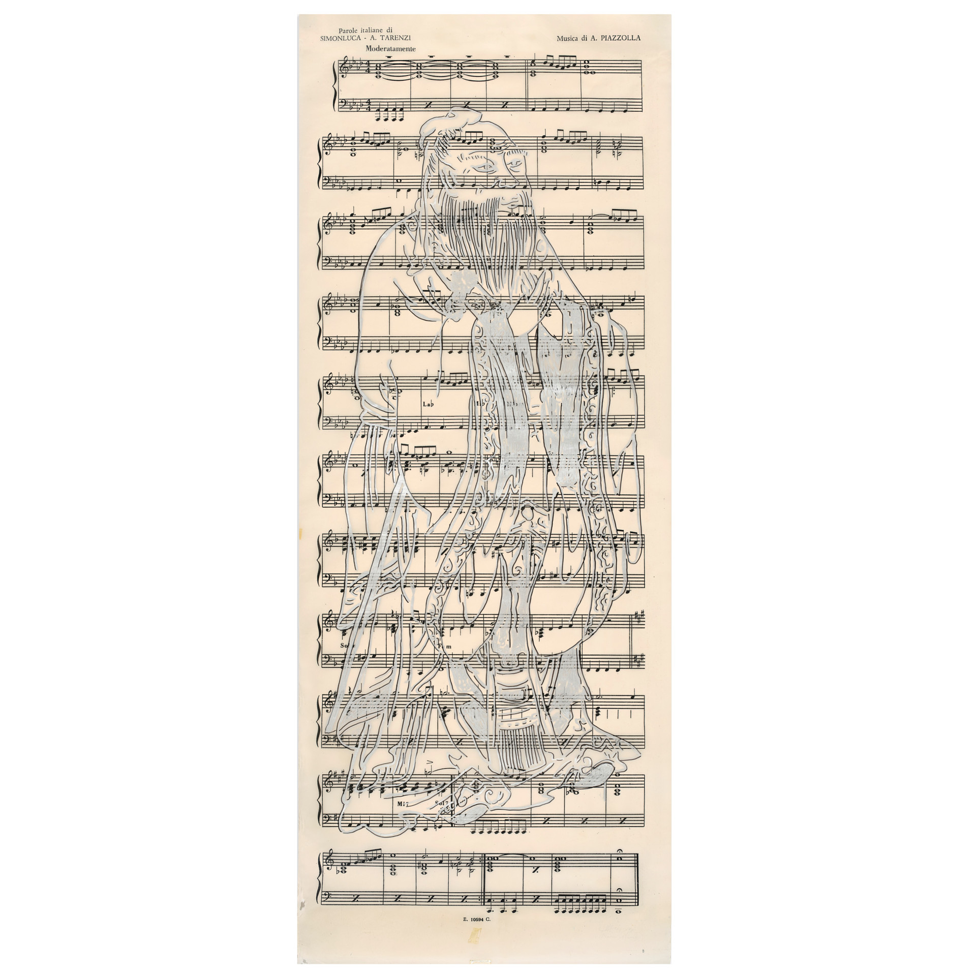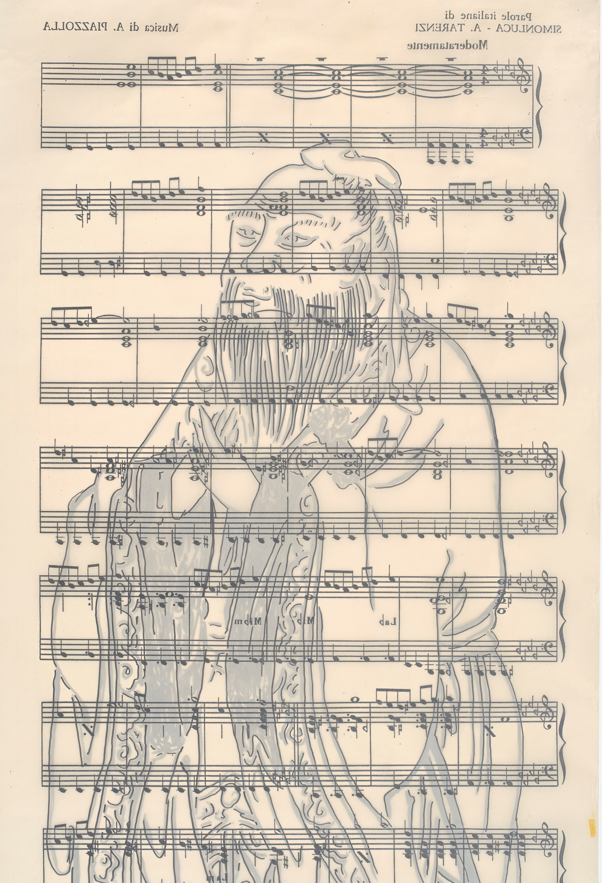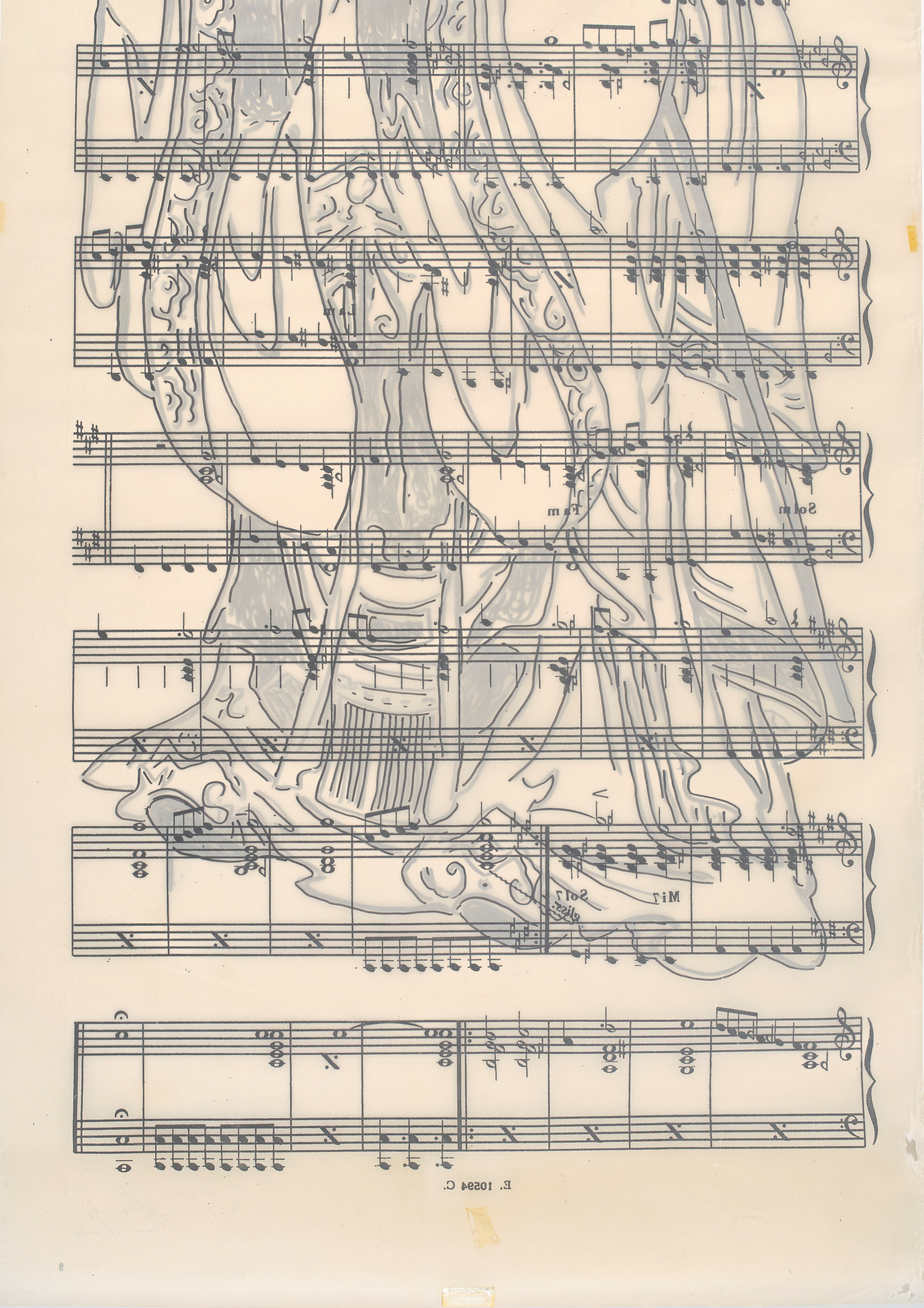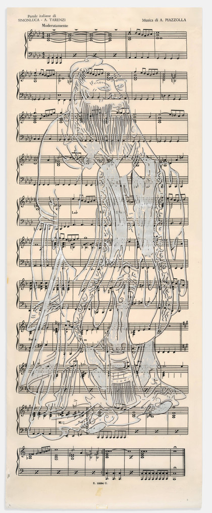 Piano-piano, 1998Marker on sheet music, cm 231 x 89,5Signed, dated, titled, lower rightPROVENANCEPrivate Collection