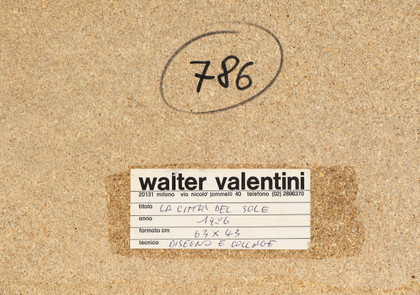 La città del sole, 1986Mixed media and collage on paper, cm 63 x 43Signed, lower rightLabel of the artist, on the backPROVENANCEPrivate Collection