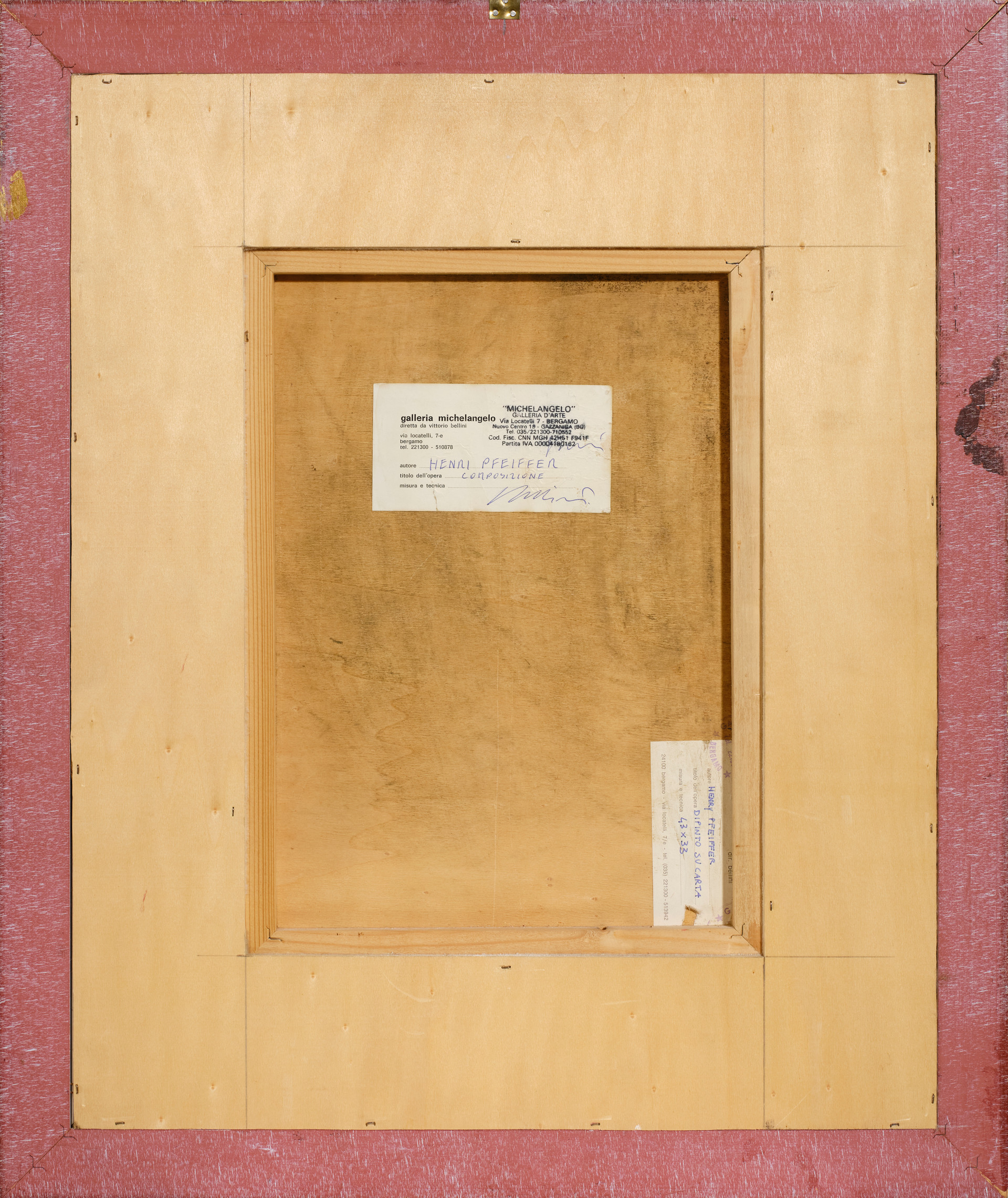 UntitledWatercolor on paper applied on board, cm 41 x 30,5Label and stamp Galleria Michelangelo, Bergamo, on the backPROVENANCEGalleria Michelangelo, BergamoPrivate Collection