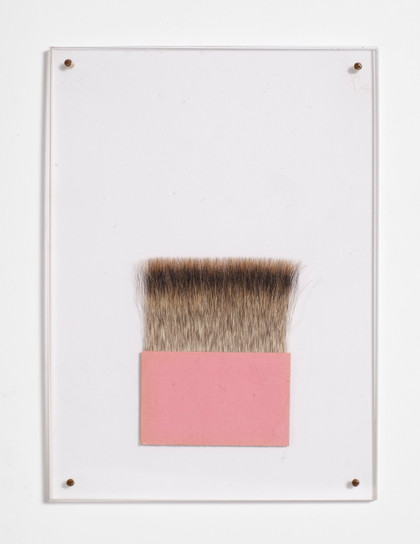 Au poil,1971 Gilding brush bristles and pink paper mounted between two plexiglass panels, cm 24 x 17 Cleton, Paris Signed, numbered, at the bottom Work n. 12/50