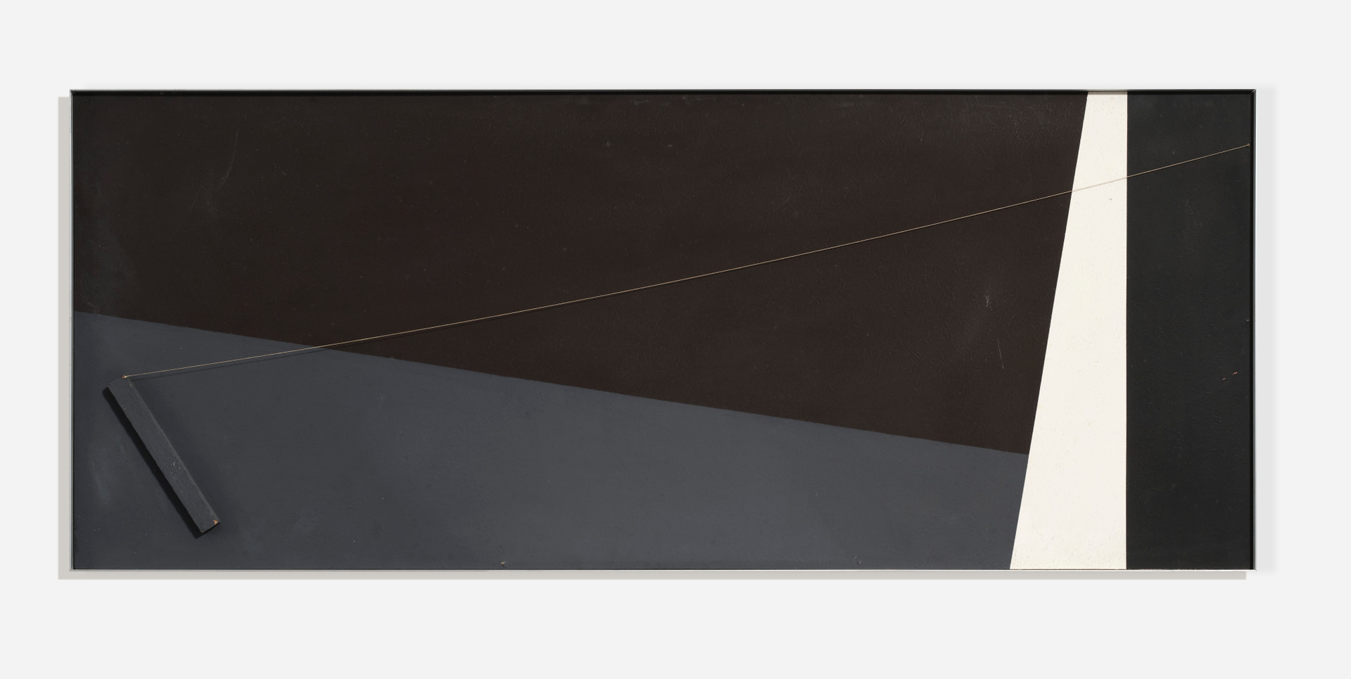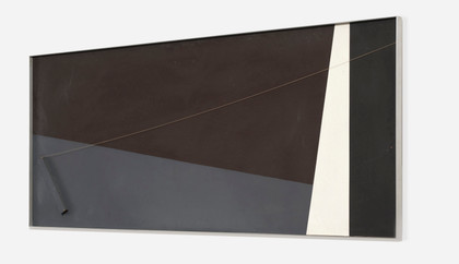 Untitled, 1973Acrylic on board and applications on wood and twine, cm 65 x 160Signed, dated, on the backStamp Galleria Ferrari, Verona, on the backPROVENANCEGalleria Ferrari, VeronaPrivate Collection