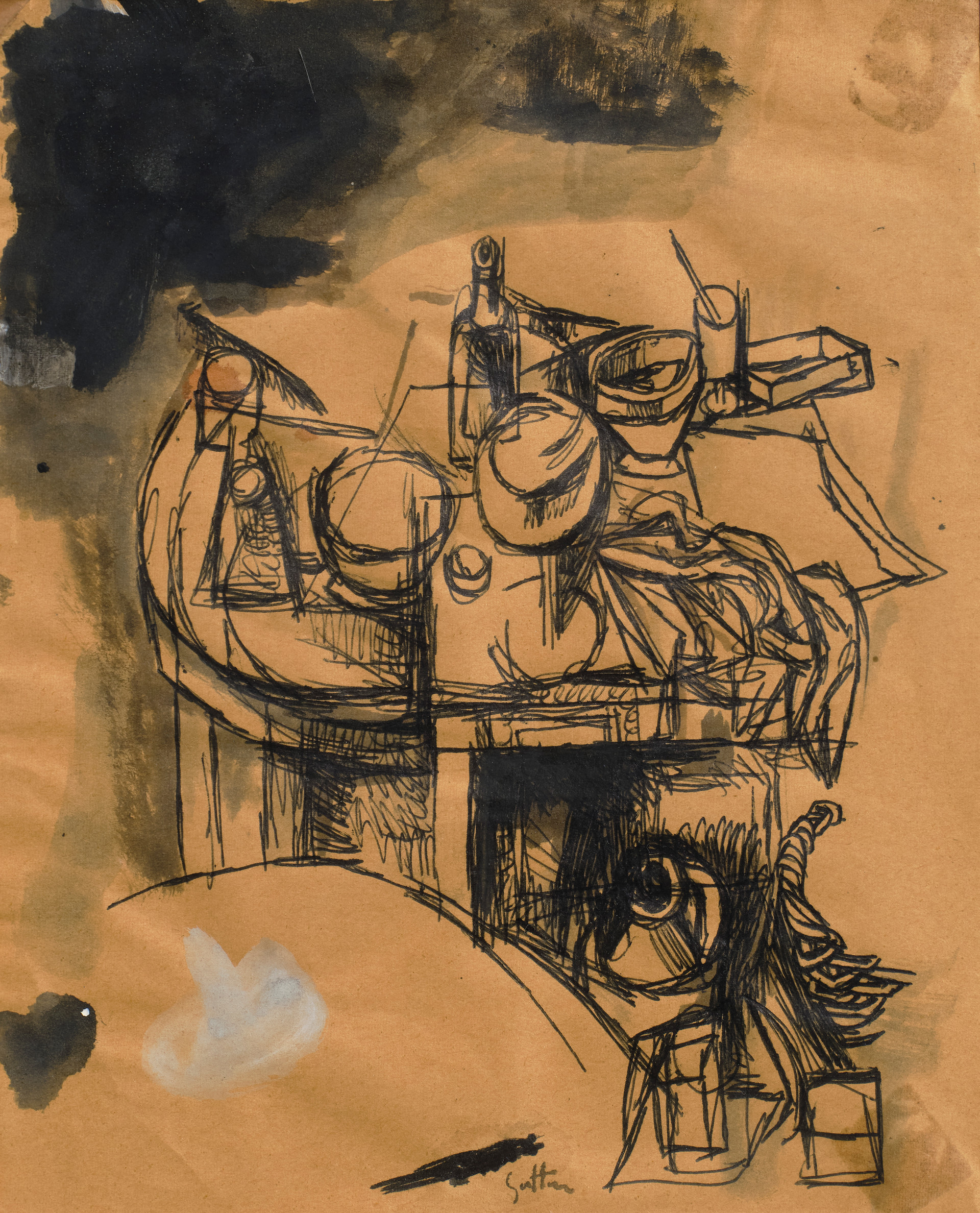 UntitledMixed media on paper, cm 23 x 18,5Signed, bottom centerStamp Galleria Zerbini, Parma, on the backPROVENANCEGalleria Zerbini, ParmaPrivate Collection
