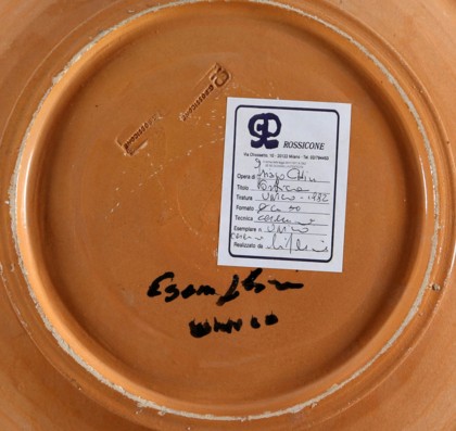 Smalti su ceramica, cm. d. 50 Firmato al centro Esemplare unico Etichetta Ceramiche Rossicone Milano, sul retro Prov. Collezione Privata