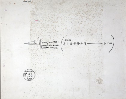 Grammature di colore su intonaco, cm. 81,5 x 101,5 Firmato e datato sul retro Timbro Galleria Vinciana Milano sul retro Autentica dell'artista su fotografia Prov. Collezione Privata