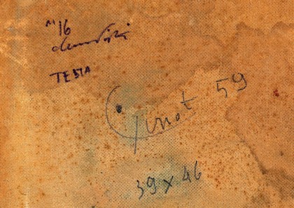 Olio su tavola, cm. 46 x 39 Firmato e datato sul retro BIBLIOGRAFIA: " Pinot Gallizio, Catalogo Generale delle opere 1953 - 1964 ", Edizioni Mazzotta, tav. 59 DT 29 Prov. Collezione Privata