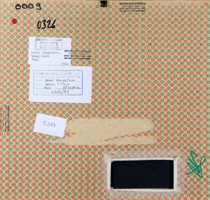 Collage su carta, cm. 22,5 x 22,5 Firmato e datato sul retro Etichetta Nuovo Millennio srl Ospitaletto sul retro Timbro Sarenco Club Art Gallery Verona sul retro Autentica dell'artista su fotografia Prov. Collezione Privata