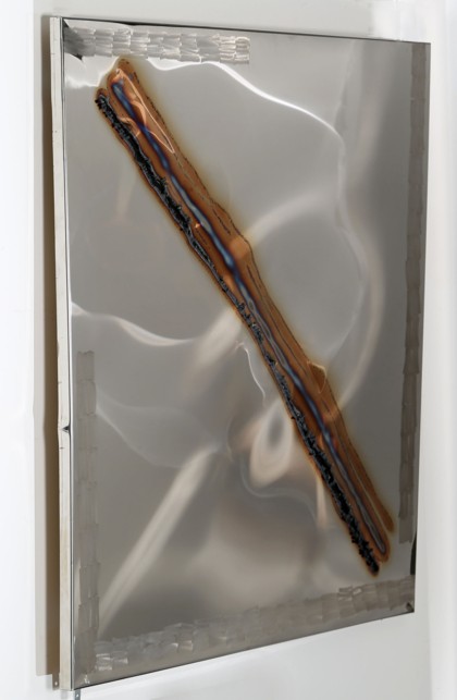 Fiamma ossidrica e flessibile su acciaio INOX, cm. 96 x 96 Firmato e datato sul retro Autentica di Maria Giuseppina Olivieri Bonamini Prov. Collezione Privata
