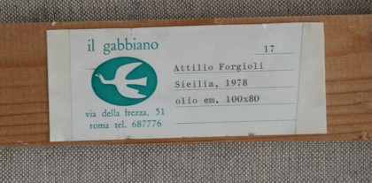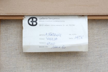 Sicilia, 1978Olio su tela, cm. 80 x 100Firmato in basso a destraEtichetta Galleria Bergamini, Milano sul retroEtichetta Il Gabbiano, Roma sul retroProv. Collezione Privata