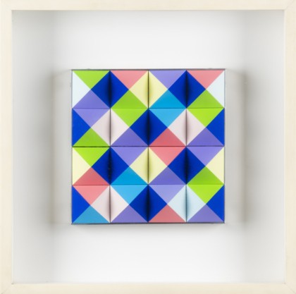 Rilievi con piramidi, acrilico su polistirene, cm. 20 x 20 x 3
