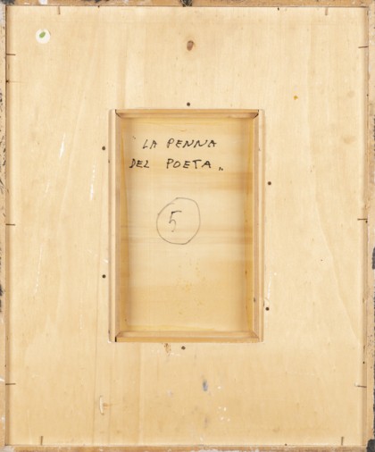 La penna del poeta, 1988Tecnica mista su cartoncino su tavola, cm. 33 x 23 Firmato e datato in basso a destra PROVENIENZACollezione Privata