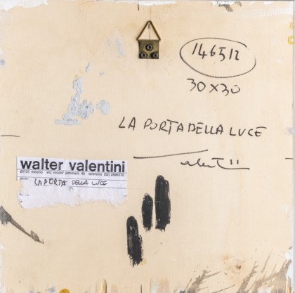 La porta della luceTecnica mista su legno, cm. 30 x 30 Firmato sul retroAutentica dell’artista su fotografia PROVENIENZACollezione Privata