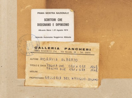 Etichetta Prima Mostra Nazionale Scrittori che disegnano e dipingono Albisola Mare sul retro