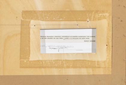 Utopia e realtà, 1971Tecnica mista e collage di legni sagomati sovrapposti su tavola, cm. 100 x 70 Firmato e datato in basso a sinistraPROVENIENZACollezione Privata