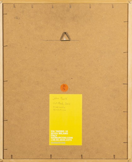 Senza titolo, 2002Tecnica mista e collage su carta, cm. 30 x 21 Siglato e datato in basso a destra Etichetta Gió Marconi, Milano sul retroPROVENIENZAGió Marconi, MilanoCollezione Privata