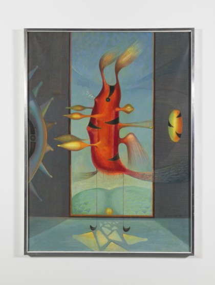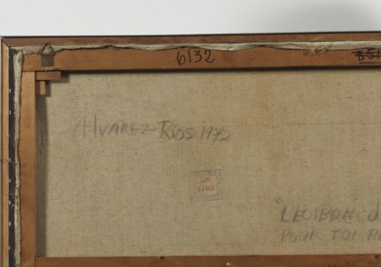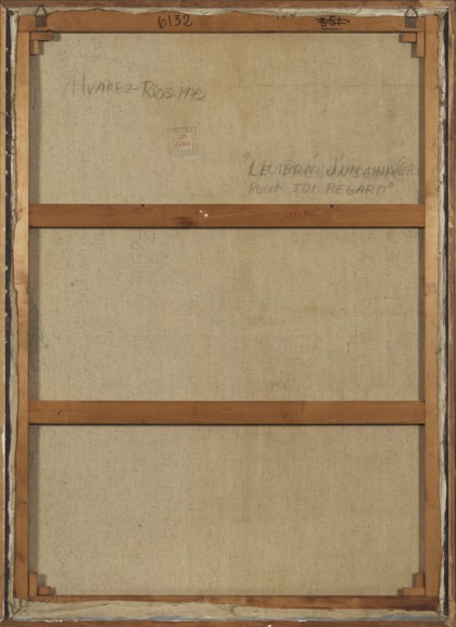 Le branc d’un univers pour toi regard, 1972Tecnica mista su tela, cm. 130 x 96 Firmato e datato in basso a destra Timbro Galleria Schettini, Milano sul retroPROVENIENZAGalleria Schettini, MilanoCollezione Privata