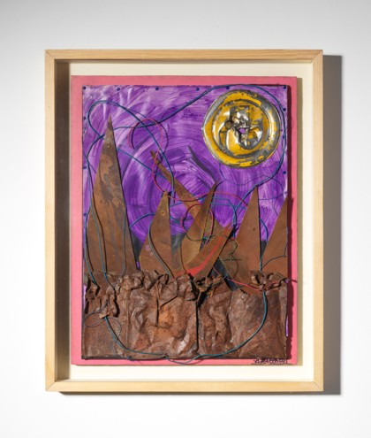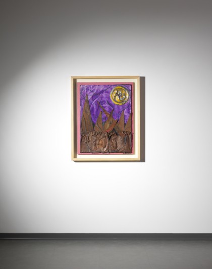 Tecnica mista, applicazioni e collage su tela su tavola, cm. 85 x 67