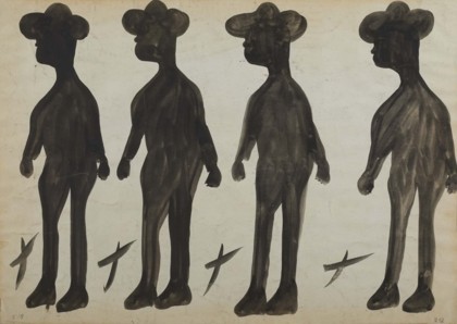 Pesce e quadrupede sovrapposti su sfondo di "pretini", 1960-62